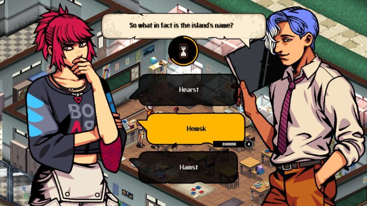 Optionale Story-Events lockern den Alltag auf. Zumeist ist im Vorfeld aber nicht immer klar erkennbar, ob sich hinter einem Ereignis ein zäher Kampf oder eine lustige Diskussion verbirgt. Im Verlauf des Spiels kommen Minispiele hinzu, die für etwas Abwechslung im Spielgeschehen sorgen. Beispiele gefällig? Mit Dämonfisch-Angeln, Reaktions-Kochen, Wortsalat-Karaoke oder Arcade-Racing vertreiben sich Faye und Co. ihre Zeit. Dies erinnerte mich entfernt an die Persona-Reihe (durch die freie Wahl der auszuübenden Tätigkeiten abseits der Story) und die Yakuza-Spiele (Art der Minispiele). Faye und ihre Freunde quartieren sich zudem in einem Clubhaus ein, das seichte Personalisierungsmöglichkeiten bietet. Allerdings kommt Demonschool hinsichtlich der gebotenen Freiheit an Nebenaktivitäten und der mechanischen Tiefe von Minispielen (mit Ausnahme des „Oh Deer“-Rennspiels!) nicht ganz an die Vorbilder heran. Demonschool hat insgesamt recht viel Inhalt und eine beachtliche Spielzeit zu bieten. Doch leider schafft es der Titel nicht, Repetition im Spielgeschehen abzuwenden.