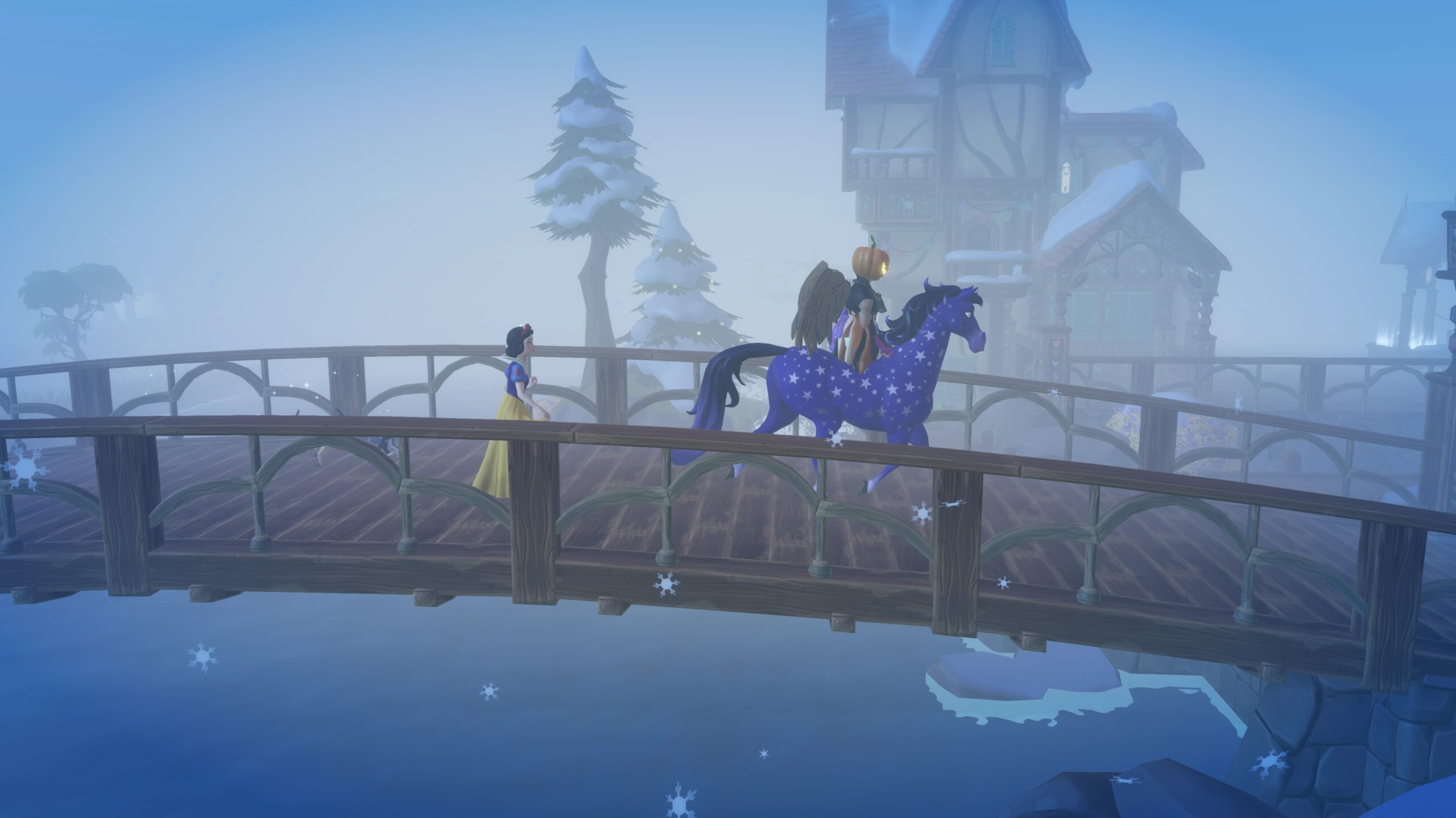 In Wishblossom Ranch gibt es natürlich wieder neue Fische zu angeln, Erze abzubauen und Gemüse und Obst zu ernten. Das wirkliche neue hierbei ist das Pferd bzw. die Pferde. Nachdem ihr zuerst euer ganz eigenes Pferd erlangt habt, schaltet ihr nach und nach drei weitere Pferde, bekannt aus verschiedenen Disneyfilmen, frei. All diese Pferde haben unterschiedliche Fähigkeiten, die ihr nutzen könnt, um verschiedene Hindernisse zu überwinden. Die Pferde haben dabei wie die Charaktere 10 Bindungslevel. Erfahrung erhalten sie, wenn ihr auf ihnen reitet oder verschiedene Aktionen wie Abbauen mit ihnen durchführt. Solche Aktionen müssen aber erst durch Levelaufstiege freigeschaltet werden. Außerdem könnt ihr pro Tag das Pferd einmal Bürsten, einmal Streicheln und mit drei festgelegten Speisen füttern, was sehr viel Erfahrung bringt. Schafft ihr es, ein Pferd am selben Tag zu Bürsten, zu Streicheln und mit allen drei Speisen zu füttern, so bekommt es einen Schimmer und ist für kurze Zeit effektiver im Abbauen etc., wodurch alles schneller geht. Das besondere bei den Pferden ist außerdem, dass ihr für Abbauen etc. und sprinten keine Ausdauer verbraucht, wodurch ihr viel mehr Sachen erledigen könnt. Leider ist Angeln nicht auf dem Pferd möglich. Nun muss ich aber zu dem schon oben angedeuteten Punkt kommen. Mit jedem DLC kommen auch neue Bugs ins Spiel. Diesmal gibt es zwar keinen Bug, der das Spiel komplett lahmlegt, doch kann man eine der Pferdelieblingsspeisen nicht kochen, ebenso wie sie selten auch keine Erfahrung durch das Bürsten erhalten. Dies tut zwar nicht weltbewegend weh, doch verlangsamt es den Fortschritt in der Story, da ein Pferd Level 4 und eines Level 5 sein muss, um in der Geschichte voranzuschreiten.