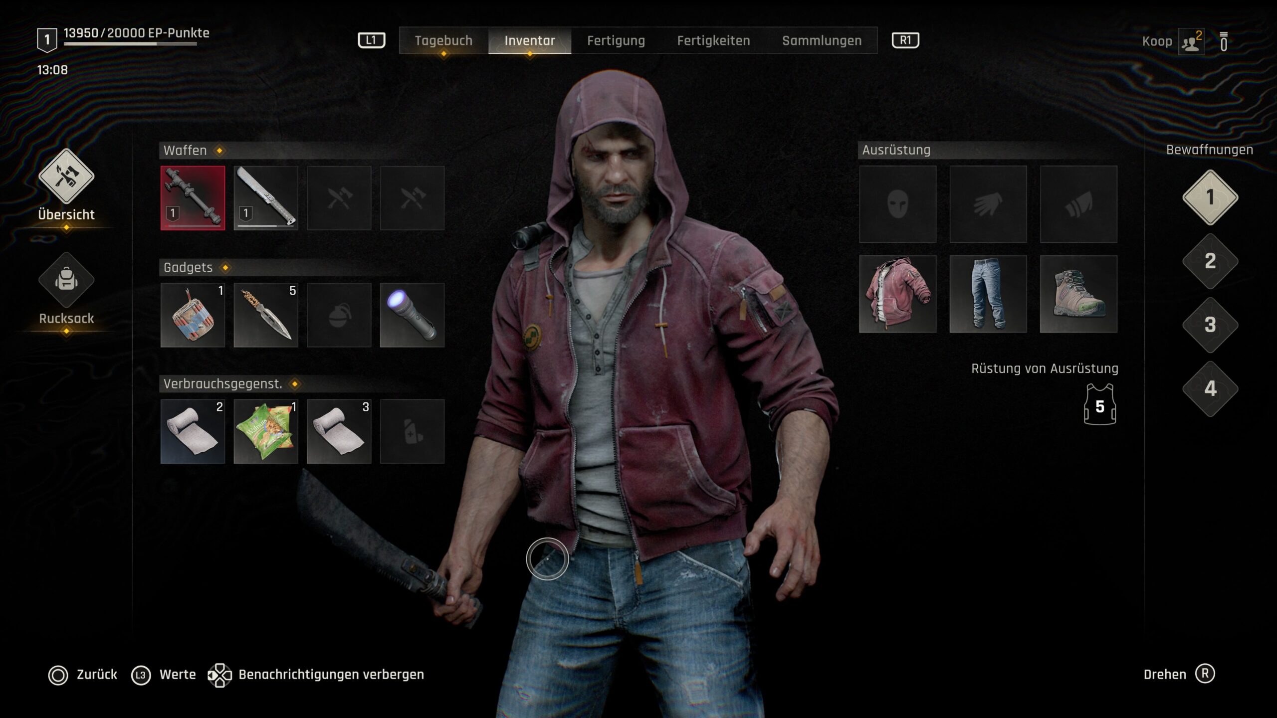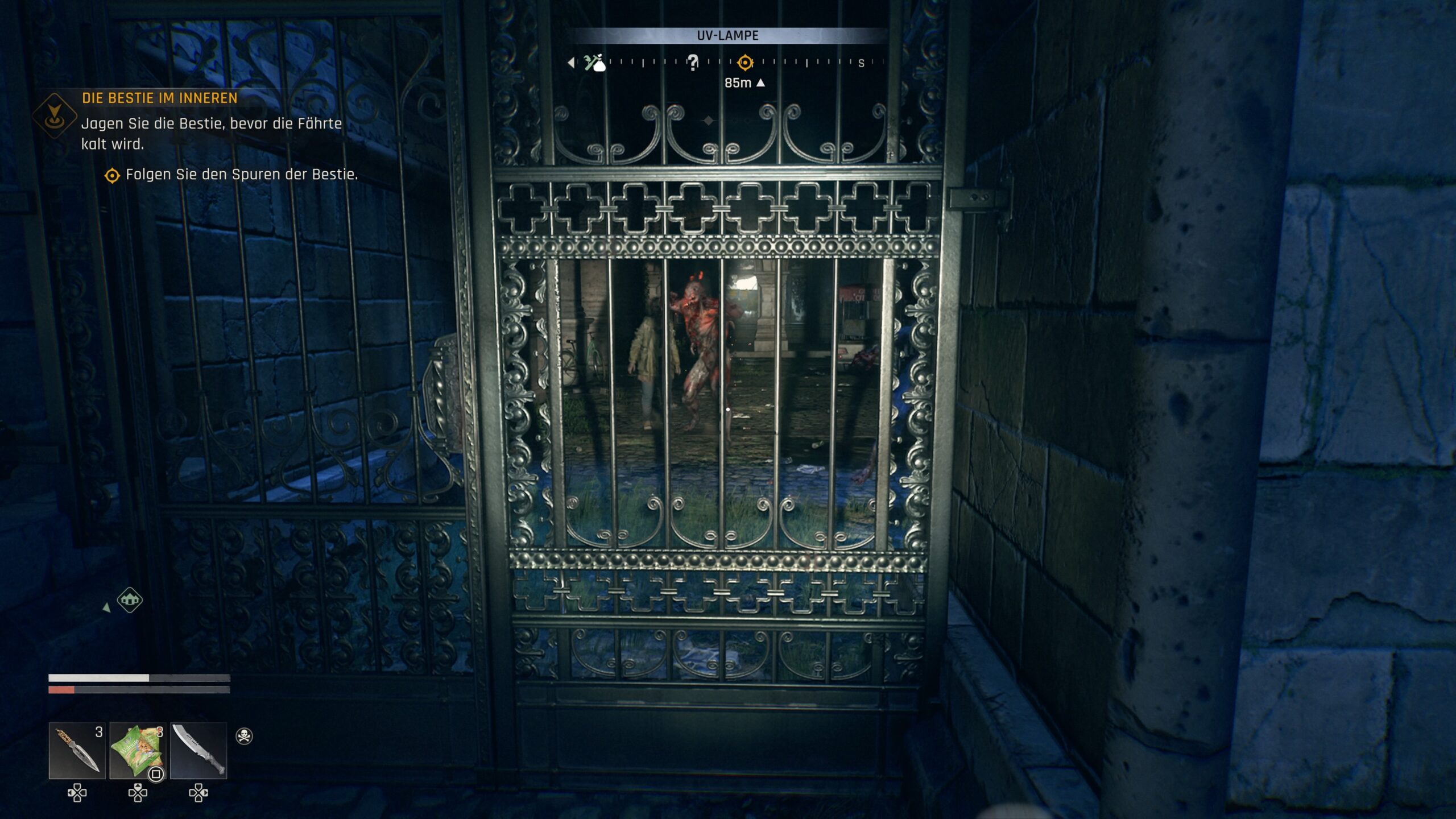 Dying Light: The Beast lief während meines Tests auf der Standard-PS5 ohne jegliche Ruckler oder Abstürze. Bis auf eine etwas längere Ladezeit zum Start des Spiels sind sonst kaum Ladezeiten vorhanden. Die Steuerung prägt sich schnell ein und geht locker von der Hand.