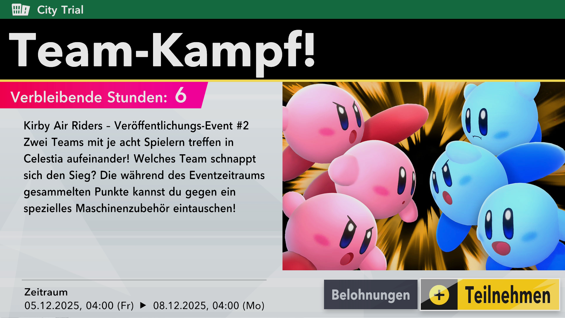 In Kirby Air Riders fahren eure Vehikel automatisch, während ihr euch auf die Lenkung, das Gebooste und die Kämpfe konzentriert. Nach und nach werdet ihr schneller. Durch Gedrückthalten der B-Taste werdet ihr langsamer, doch baut ihr auch einen Boost auf, wodurch ihr zum Beispiel besser um Kurven kommt. Durch die B-Taste könnt ihr, egal welchen der 21 spielbaren Charaktere ihr spielt, Gegner aufsaugen und dann darauf basierend eine Fähigkeit einsetzen, ebenso auf der B-Taste. Durch Wackeln mit dem Analogstick führt ihr einen Wirbelangriff aus, mit dem ihr auch Gegner besiegen könnt. Besiegt ihr einen Gegner, so erhaltet ihr einen kurzen Boost. Springt ihr über Rampen, so könnt ihr gleiten, wobei ihr auch an Tempo gewinnt und einen kleinen Boost erhaltet, sobald ihr landet. Nach und nach füllt sich eure Spezialattackenanzeige auf, die ihr dann mit einem Drücken der Y-Attacke loslasst. Im Road Trip Modus erlebt ihr die oben beschriebene Solostory. Ihr reist durch verschiedene Gebiete in Etappen. Durch das Absolvieren von Minispielen, die unterschiedliche Rennarten mit bestimmten Zielen darstellen, steigt ihr im Level auf und erhaltet Verbesserungen für euren Charakter in verschiedenen Eigenschaften, wie Angriff, Verteidigung, Wendigkeit usw. Meist habt ihr dabei die Wahl zwischen drei verschiedenen Rennen, wobei ihr schon im Voraus die Verbesserung seht, die ihr im jeweiligen Rennen erhalten würdet, wodurch ihr ganz gezielt euren Charakter weiter voranschreiten lassen könnt. Zwischendurch trefft ihr auf Händler, die verschiedene Verbesserungen oder auch Maschinen gegen die Währung des Road Trips, die ihr nach jedem Rennen erhaltet, tauschen könnt. Am Ende einer Etappe erwartet euch immer ein Boss, den ihr aktiv Besiegen oder im Rennen schlagen müsst. Habt ihr das geschafft, gelangt ihr je nach Person, die ihr auf dem Trip mitgenommen habt, in die nächste Etappe. Dies geht bis zum finalen Boss so weiter. Neben dem Road Trip Modus gibt es noch den Air Ride Modus, in dem ihr eine bestimmte Anzahl an Runden so schnell wie möglich abschließen müsst, was mit bis zu 6 Spieler:innen spielbar ist und aus 18 Strecken besteht. Beim City Trial seid ihr in der großen Map Skyah unterwegs, die ihr frei erkunden könnt, wobei es einige geheime Orte zu entdecken gibt und immer mal wieder Eventrennen auftauchen, die ihr absolvieren könnt, um Verbesserungen zu erhalten, wobei dies mit bis zu 16 Spieler:innen gleichzeitig spielbar ist. In Top Ride fahrt ihr schnelle kleine Rennen aus der Top-down-Perspektive, wobei hier bis zu 8 Spieler:innen teilnehmen können. Egal, welchen Modus ihr wählt, die Rennen sind immer sehr schnell und kurz, wodurch ihr euch nie zu lange auf einer Strecke aufhalten werdet. Zusätzlich gibt es noch Dailys und zeitlich limitierte Events, an denen ihr teilnehmen könnt.