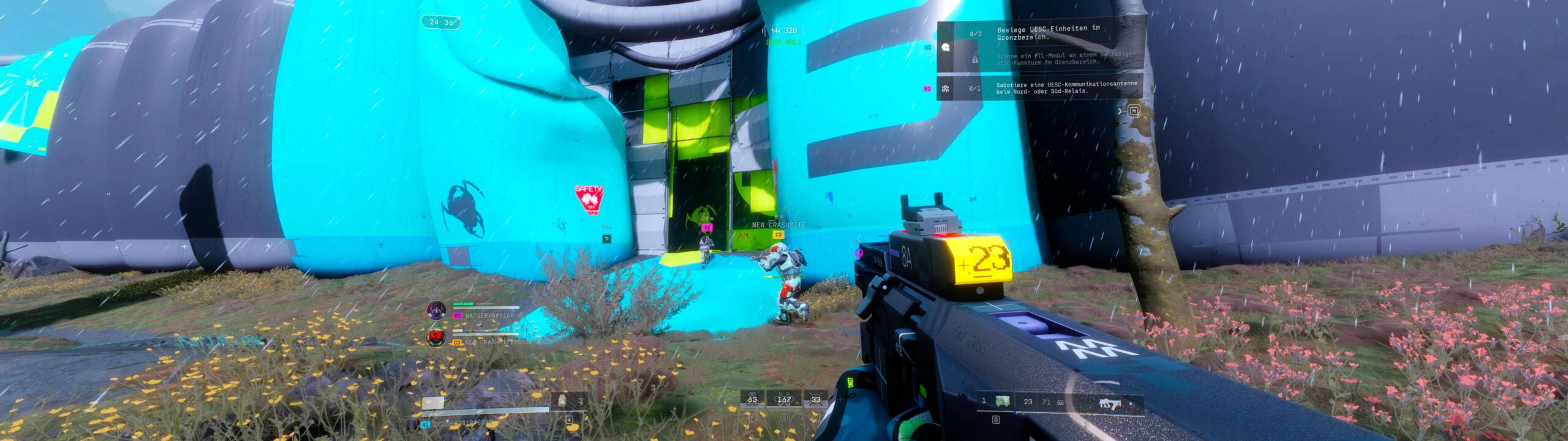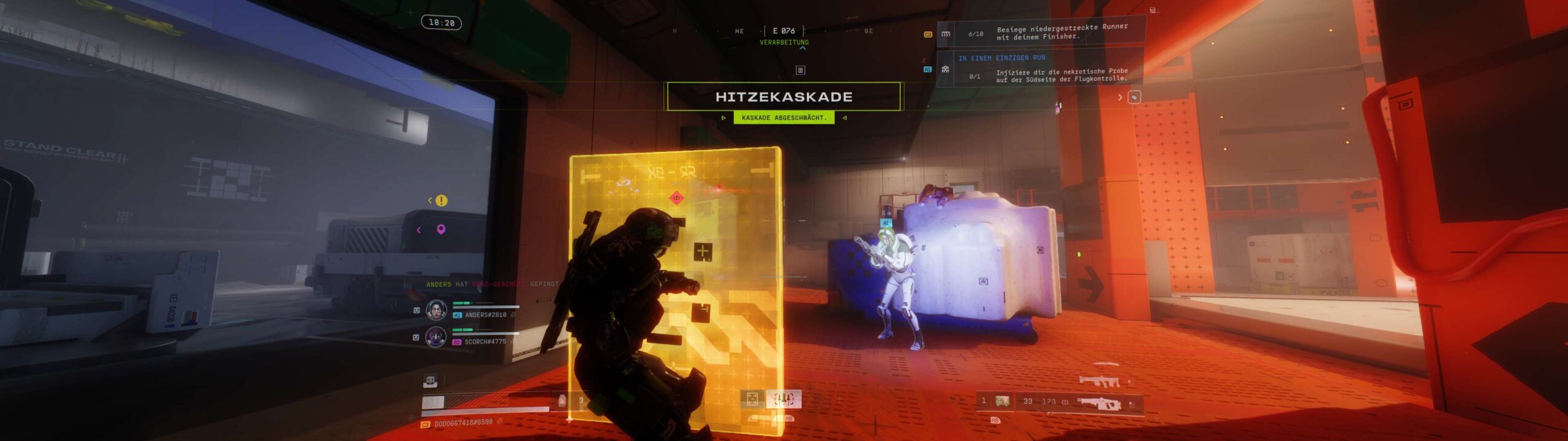 Mit dem Außenposten wird das Gefühl permanenter Gefahr noch weiter verstärkt. Die Karte ist noch kleiner und bringt mit Naturgewalten einen zusätzlichen Kniff ins Spiel. Über die Benutzeroberfläche wird eine sich annähernde Hitzekaskade angekündigt, die zwar hübsch wie ein Feuerwerk aussieht, aber im freien Gelände äußerst gefährlich ist. Dadurch werden in regelmäßigen Abständen alle Spielenden in die verfügbaren Gebäude getrieben, was die Action immer wieder auf enge Gänge ohne Aussicht auf Flucht verlagert. Die KI-Feinde sind im Außenposten zudem noch aggressiver. Wenn ein UESC-Commander Verstärkung ruft, ist besondere Vorsicht geboten. Die zur Flucht aufzusuchenden Exfil-Stationen sind alle durch UESC-Einheiten bewacht, was eine Exfiltrierung schwieriger gestaltet als auf den anderen beiden Karten.