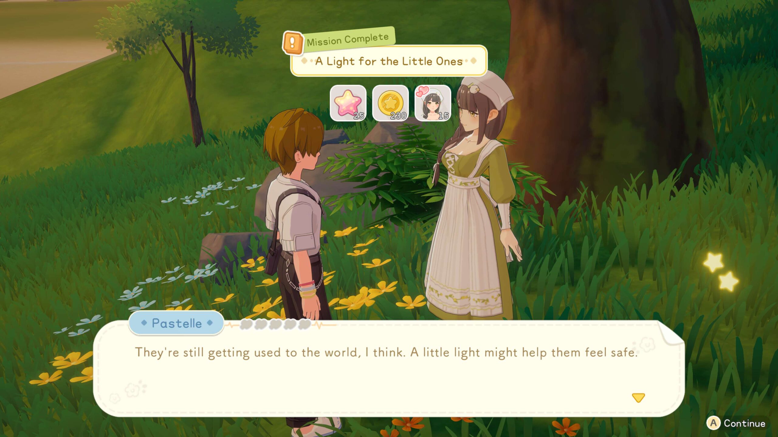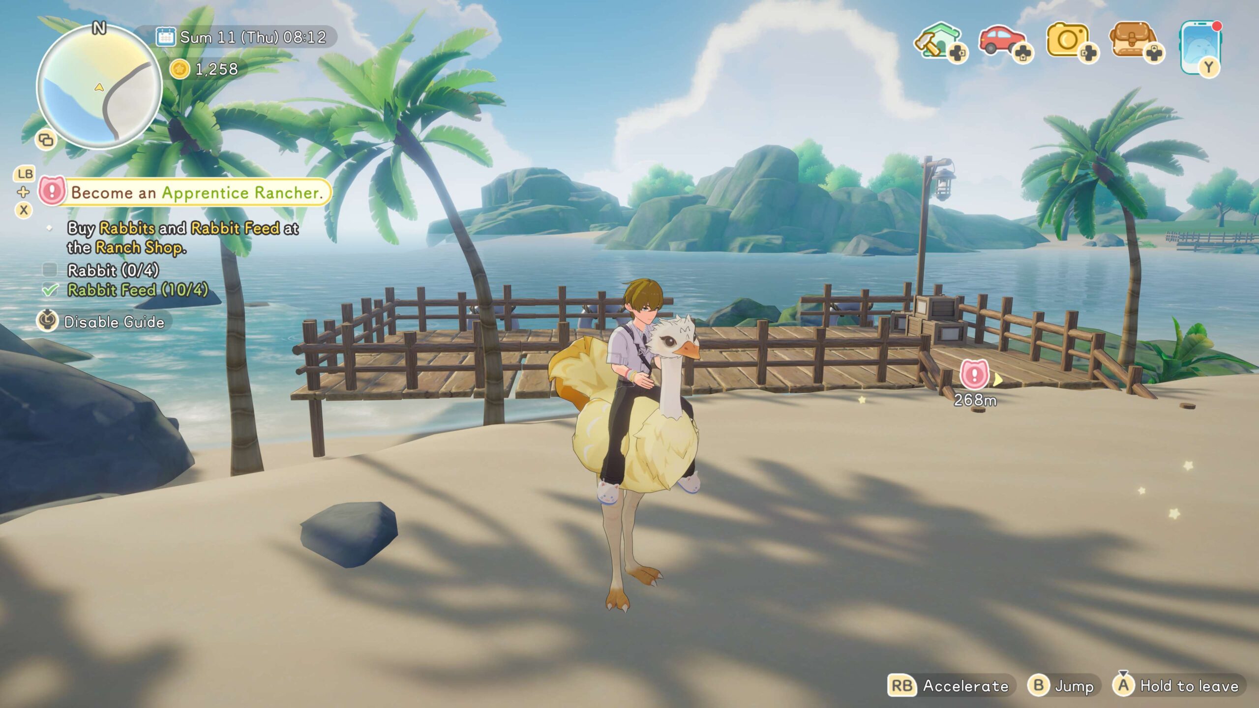 Die ersten Stunden glänzen durch einen tollen Spielfluss: Eine gelöste Aufgabe führt nahtlos zur nächsten, Belohnungen schalten neue Aktivitäten frei, und das Handy liefert zusätzliche Meilensteine und Sticker fürs Sammelalbum, die einmal mehr neue Blaupausen und virtuelle Währung freilegen. Nach etwa fünf Stunden hatte ich jedoch so viele offene Aufgaben, dass ich mich kurzzeitig überrumpelt fühlte. Glücklicherweise haben die Professionen-Aufgaben kein Zeitlimit. Dies trifft lediglich auf völlig optionale Quests zu. Starsand Island überlässt seinen Spielern und Spielerinnen die Freiheit darüber, wie viele dieser optionalen Quests verfolgt werden. Wer sich auf das Geschehen einlässt, erlebt ein entspanntes, aber dennoch motivierendes Spiel, das viel Freiheit im Angehen der Aufgaben bietet.